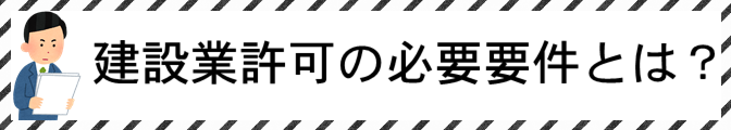 - 建設業の許可を取得するためには、以下の5要件をすべて満たす必要があります。
