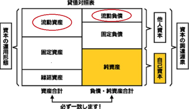 - 特に流動資産が流動負債より少なくなると100%を割ってしまいますので、注意が必要です。
