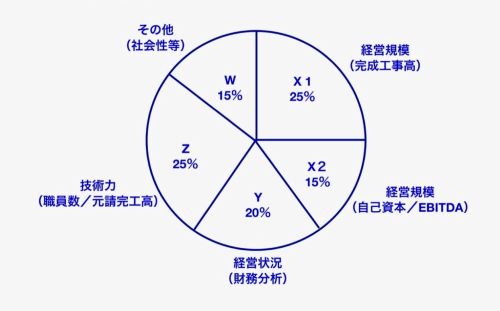 (X1)=経営規模等評価の結果に係る数値のうち、完成工事に係るもの で、全体の25%を占めており、最も重要な評価項目になります。