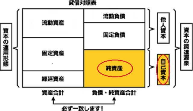 - 法人の場合、「自己資本」イコール「純資産合計」です。